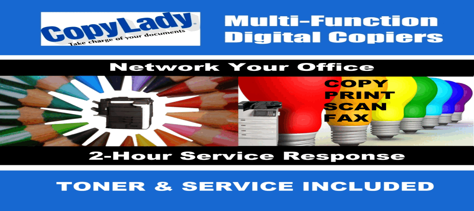Ready to kick it up a notch? Let CopyLady get you there!At CopyLady, We carry Multifunction Printers from major brands such as Epson, Kyocera, and KIP.Got a machine you want us to fix? We got you covered. We service all major printer and copier brands! Need a toner, ink or other component for an existing machine? Can't find it anywhere else? We can help you!